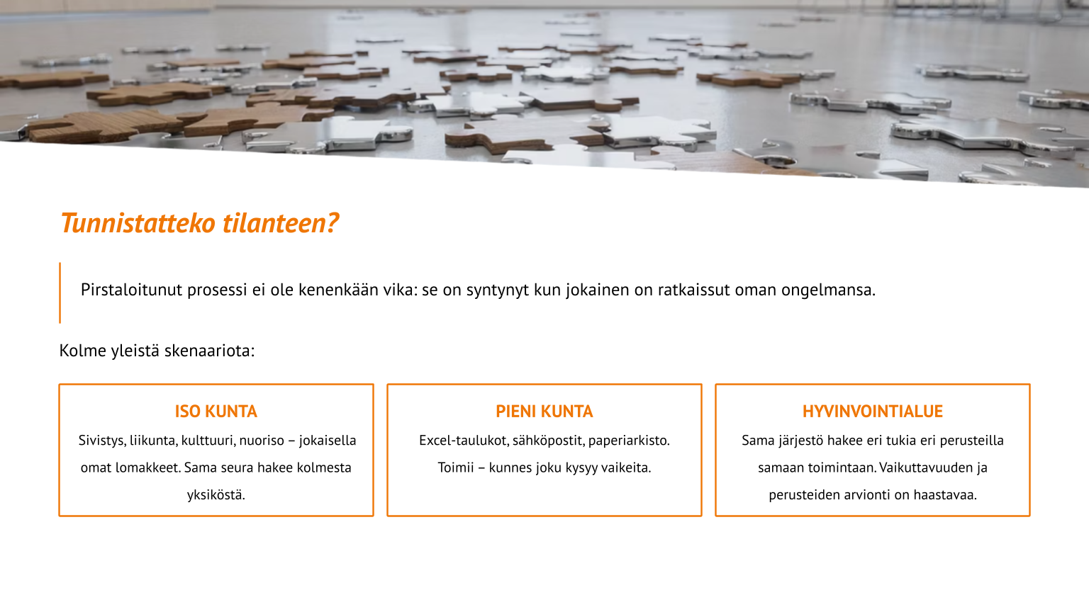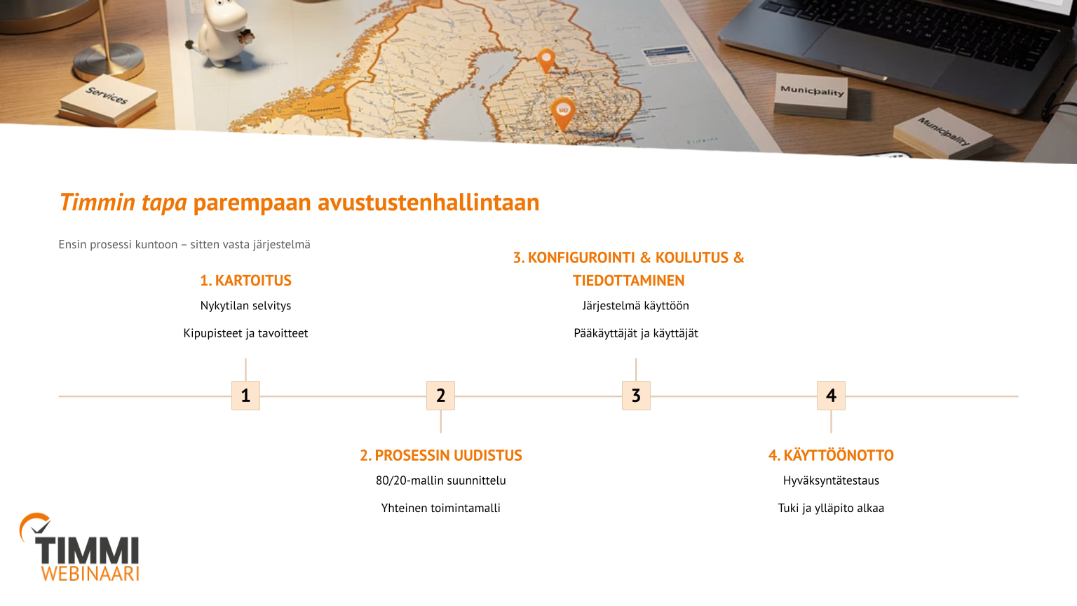 Avustusten käsittely on suomalaisissa kunnissa ja hyvinvointialueilla tyypillisesti kehittynyt orgaanisesti. Jokainen yksikkö on ratkaissut oman tarpeensa, ja lopputuloksena on kokonaisuus, joka toimii arjessa mutta jonka hallinta on hankalaa.